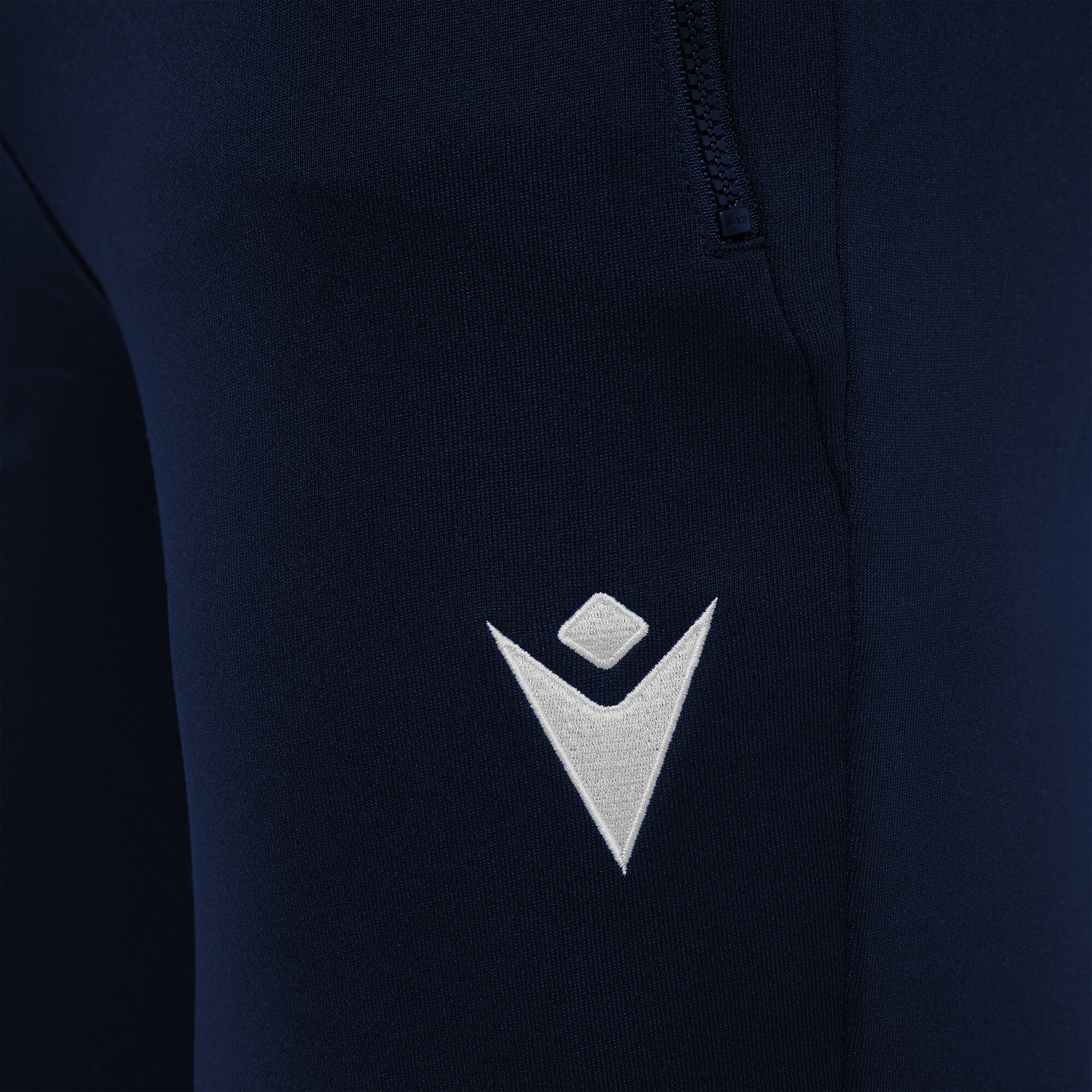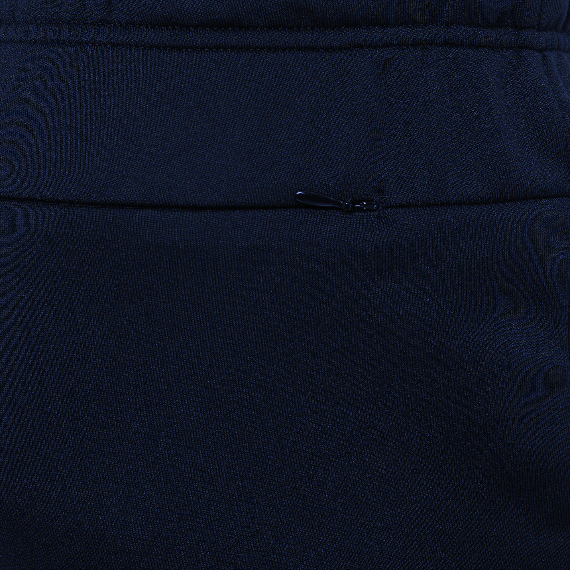 Buzunare laterale cu fermoar injectat (presofuzat), Buzunare posterioare cu fermoar invizibil, Șnur plat (în talie).