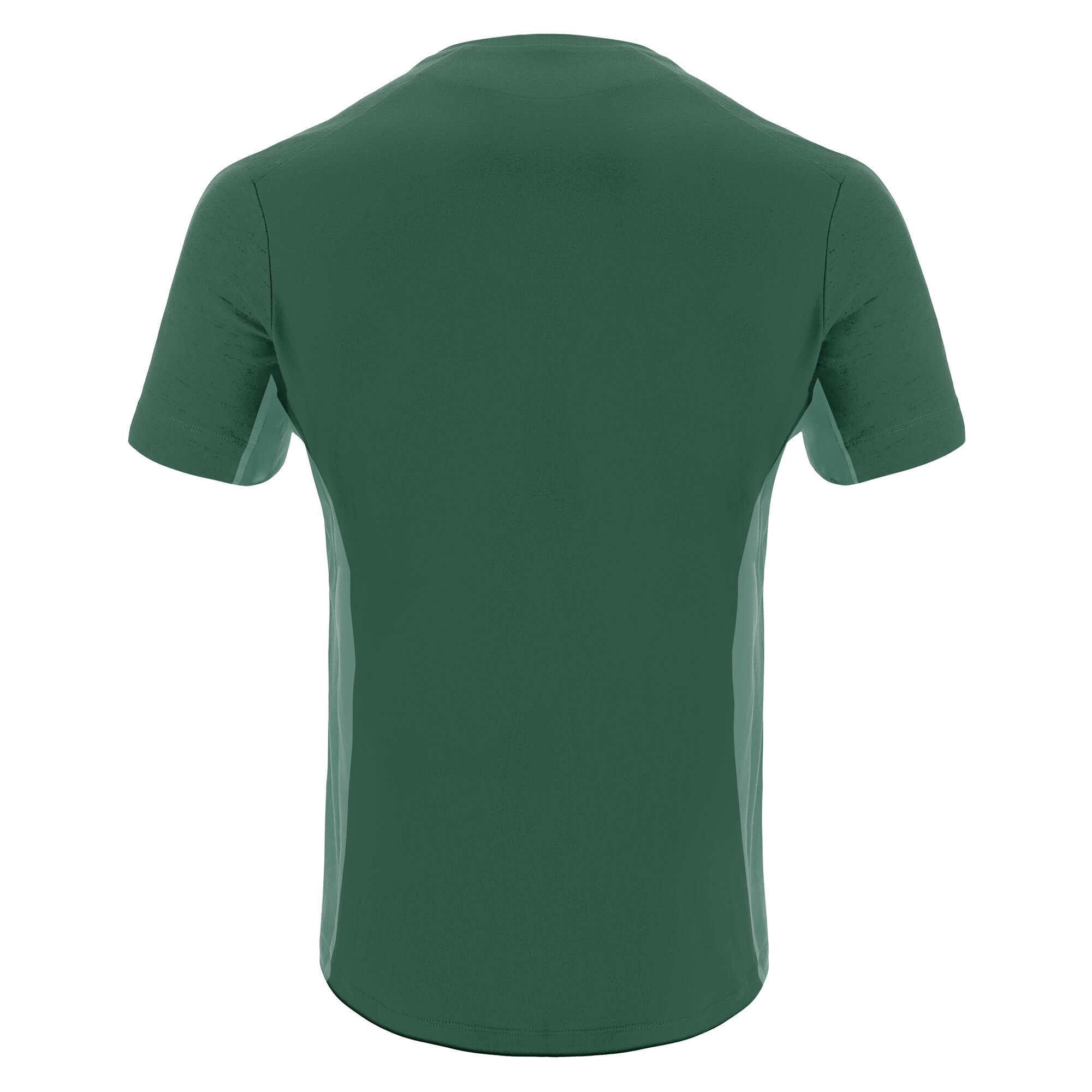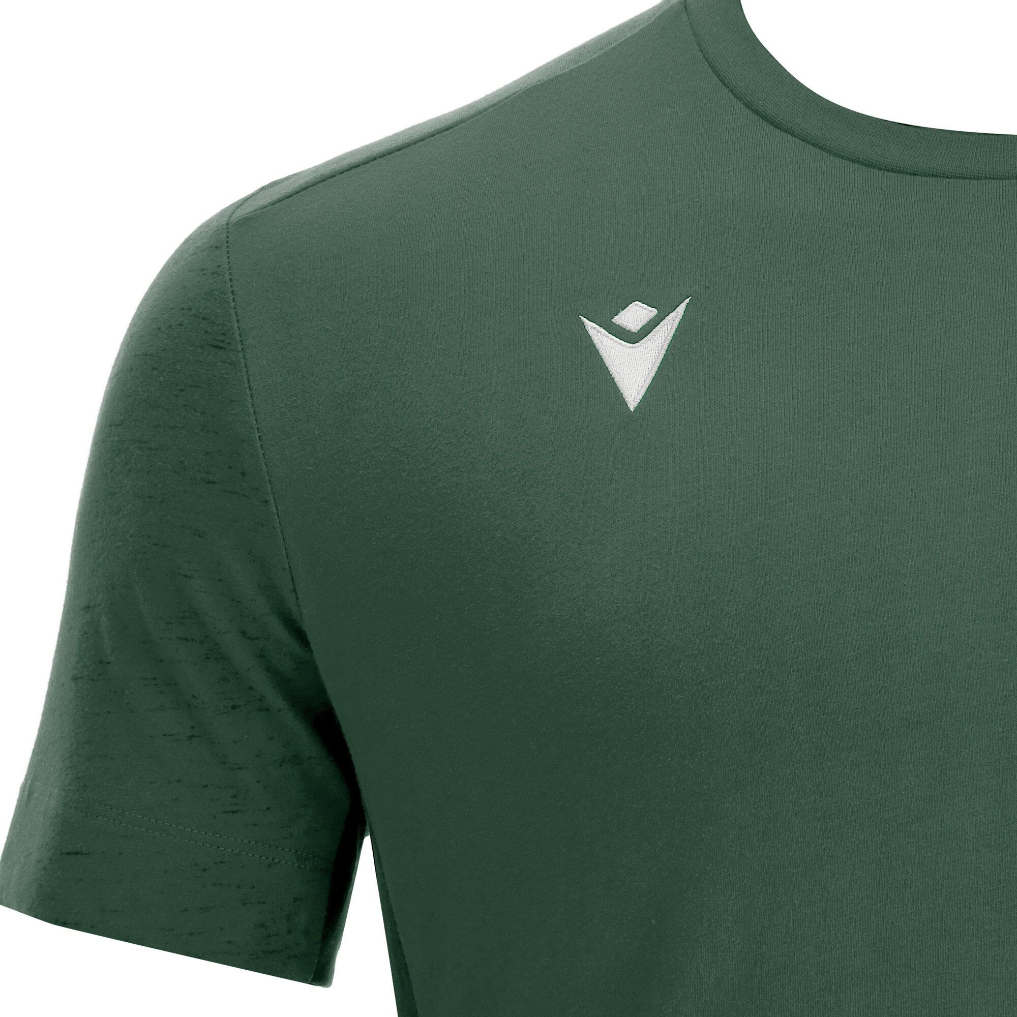 Tricou din bumbac 100% cu guler rotund reiat. Textură cu efect melanj pe mâneci și umeri și detalii ton pe ton pe laterale și în partea inferioară a mânecii.