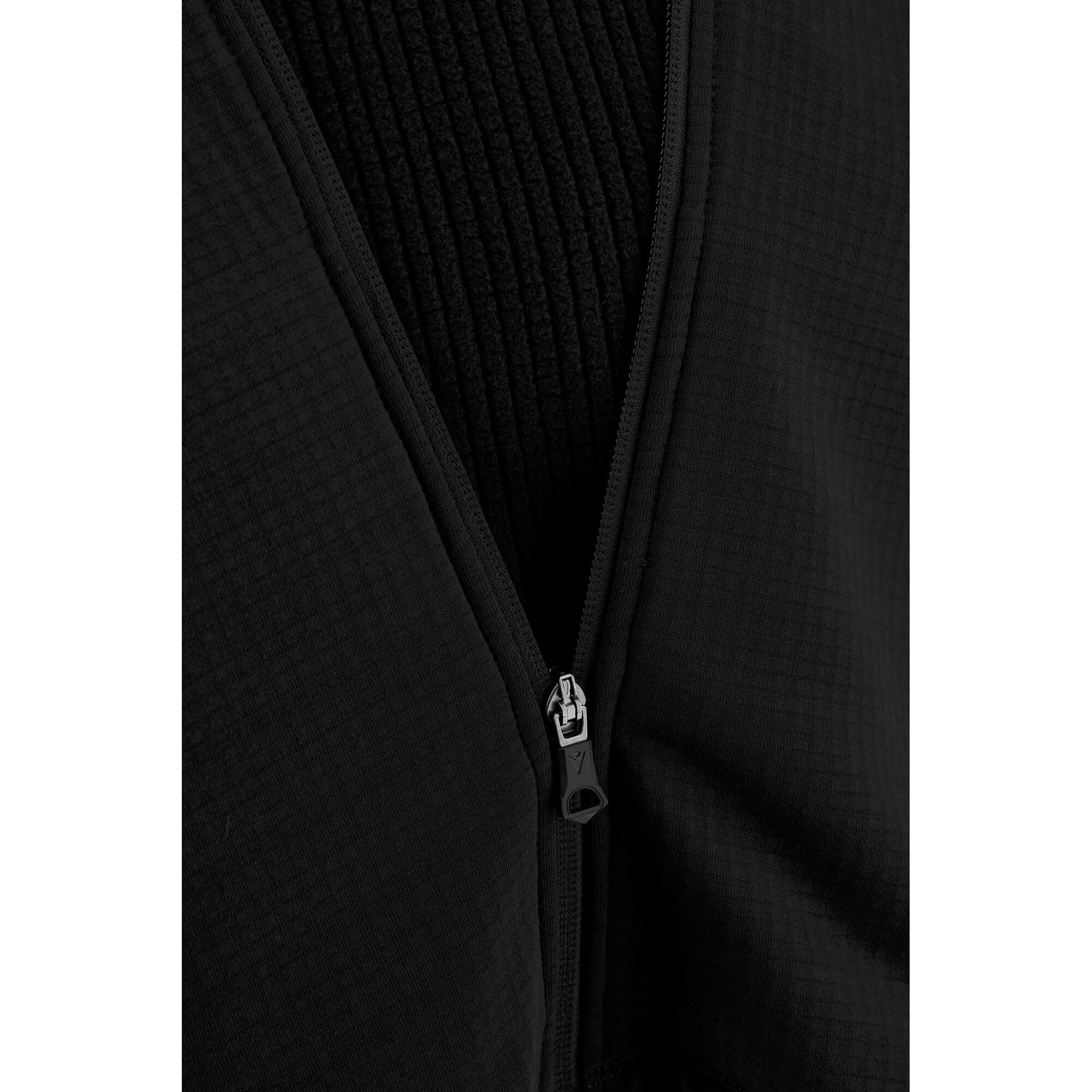 Fermoar frontal complet (full zip) inversat (ascuns) cu cursor autoblocant, Buzunare cu fermoar inversat (ascuns) cu cursor autoblocant, Inserții laterale și sub mânecă din material elastic (stretch), Bandă de protecție la gât (salvacollo).