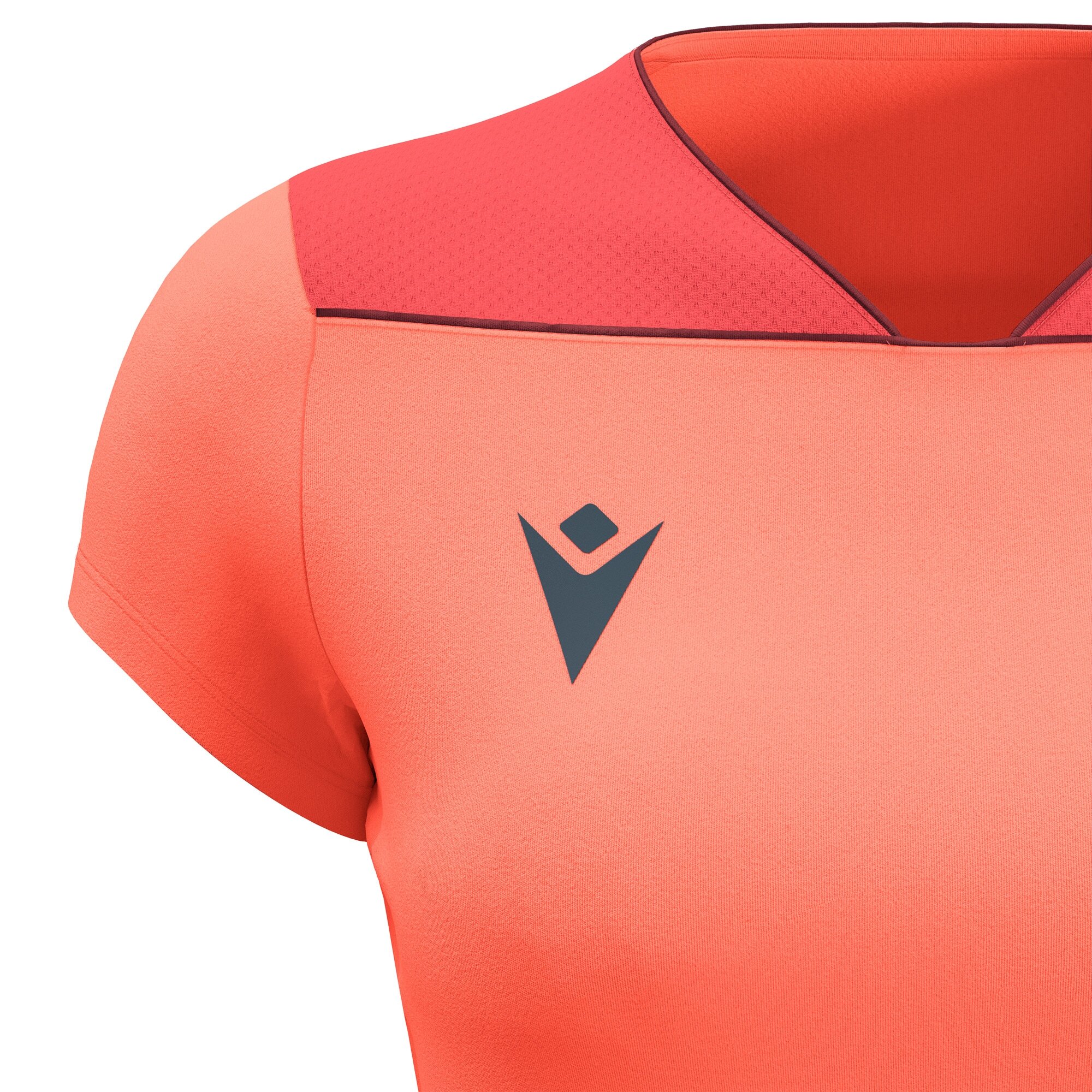 Women’s match day shirt in Softlock fabric with a V-neck highlighted by contrasting piping which is also picked up on the front yoke. Inserts in light micromesh on the sides and shoulders enhance breathability.